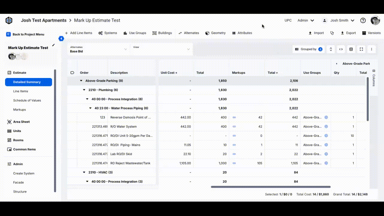 Note: It's worth noting that the platform automatically preserves this grouping view for you. Therefore, even if you navigate away from the page or switch to a different project, your estimate will retain its grouping.