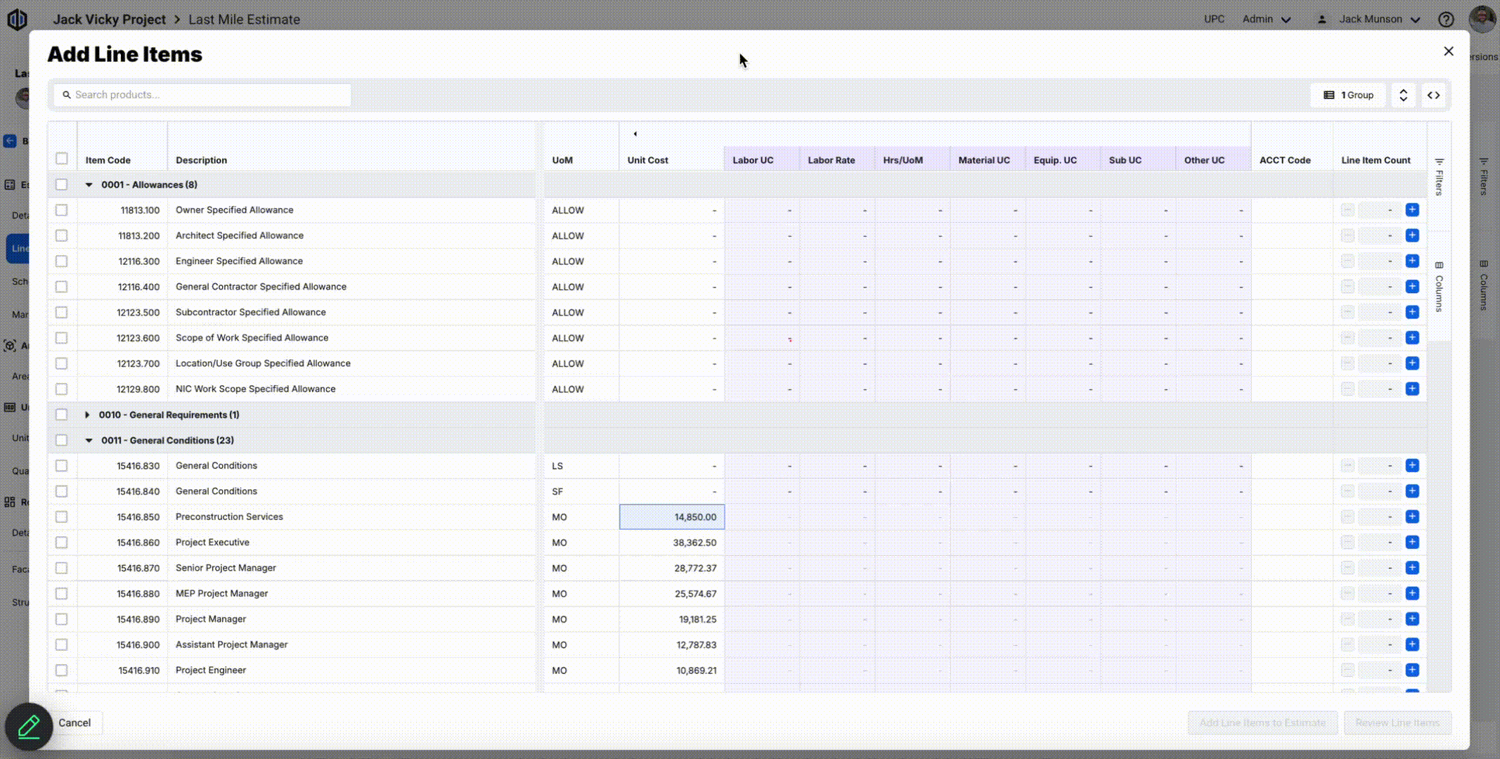 Note: To assign Alternates to your selected line items, navigate to Review Line Items, where you will see an Alternates column. Select the appropriate Alternates, then click on Add Line Items to Estimate.