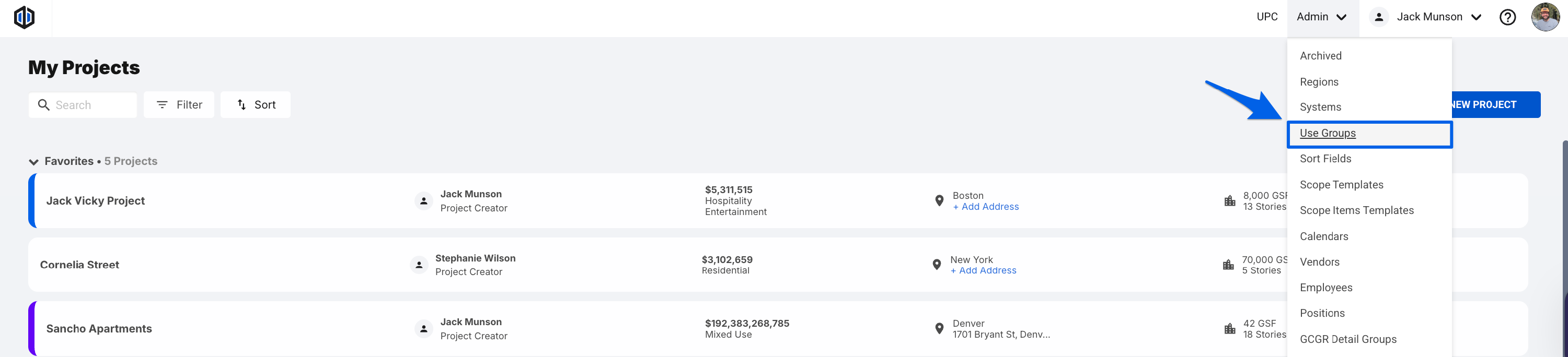 - Within the Admin dropdown on the top-right of your screen, click on Use Groups.