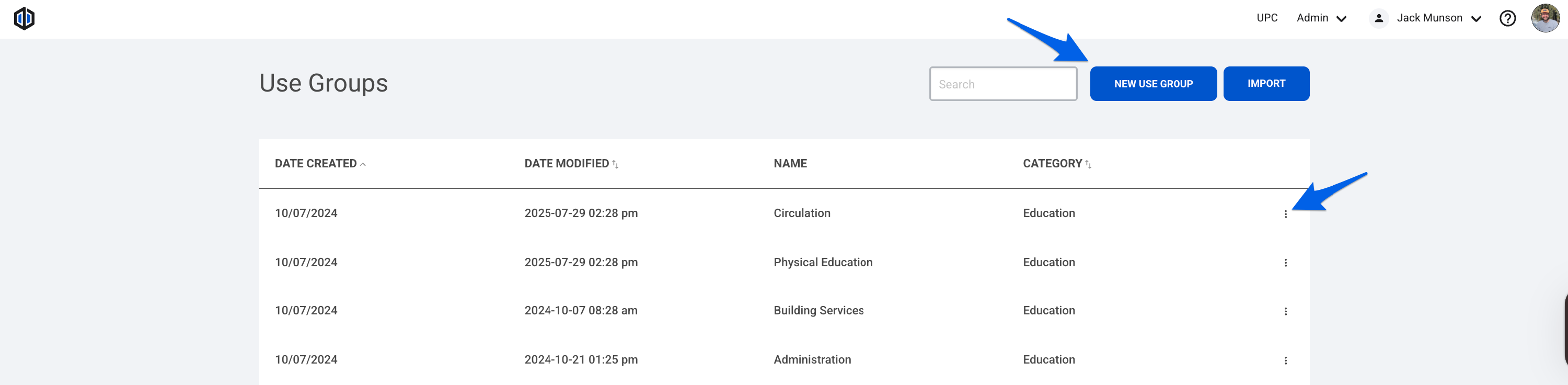 - It will take you to a page where you can create and/or edit your Use Groups. Click New Use Group to create a new one, or click on the 3 dots (ellipsis) next to the specific Use Group you want to add Unit Specs to, and select Edit.