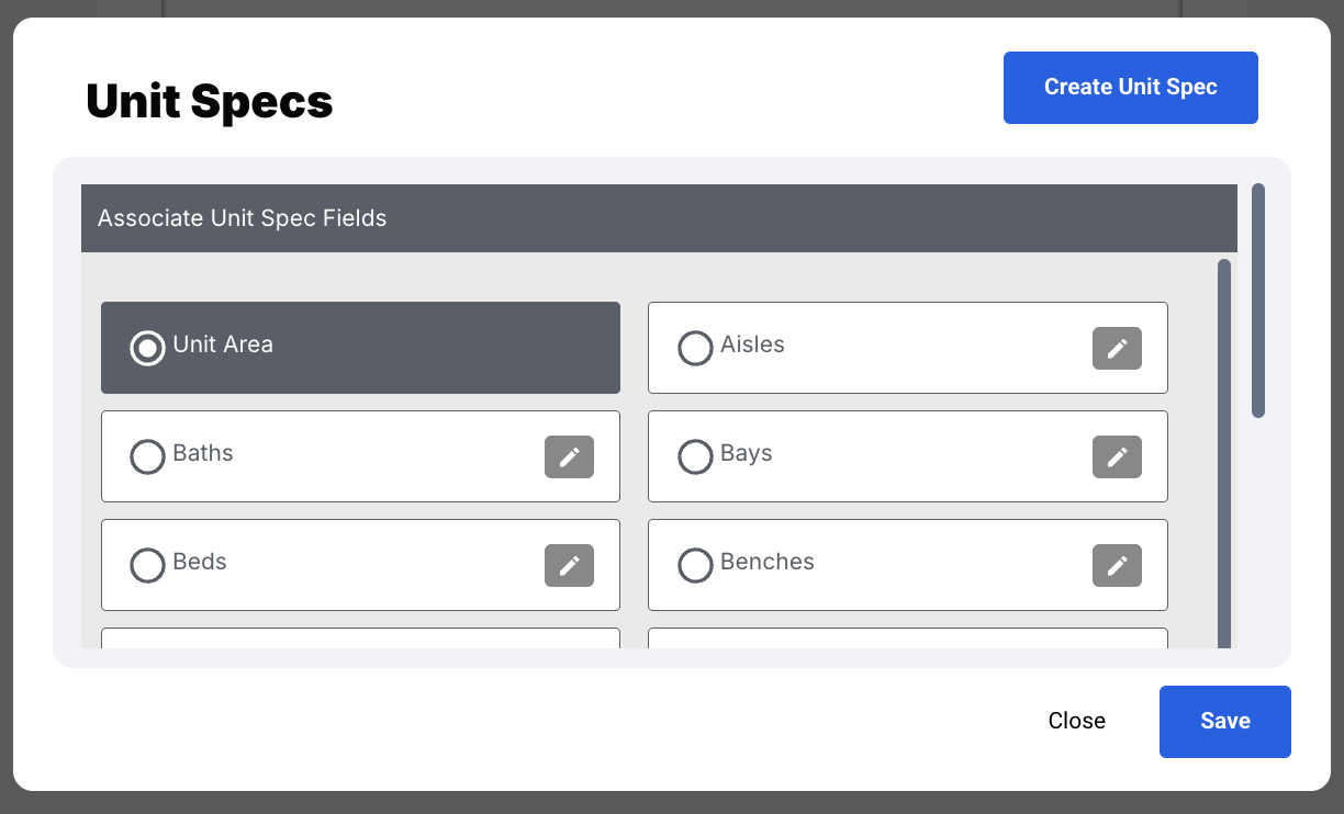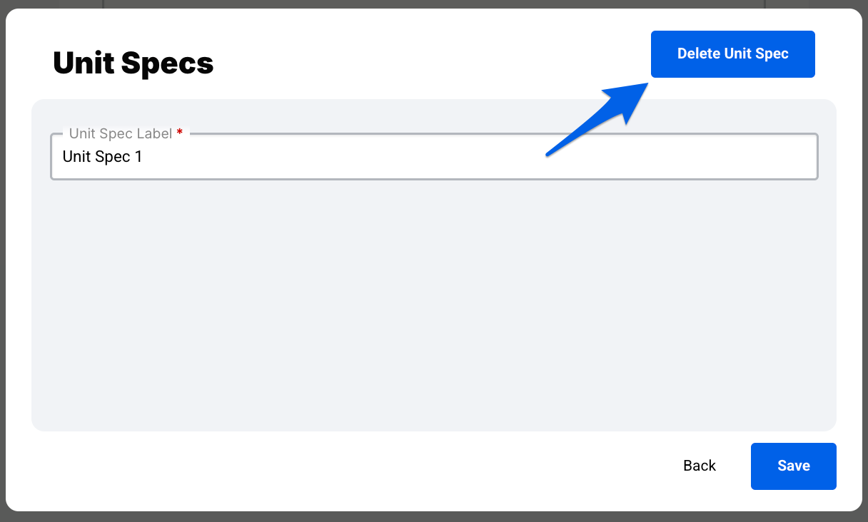 - Click on Manage Unit Specs. You’ll then be able to create, edit, or delete a Unit Spec.