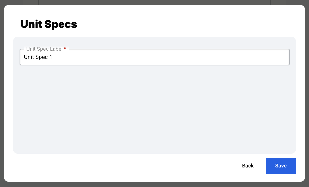Set a Label for the Unit Spec (required). Click Save.