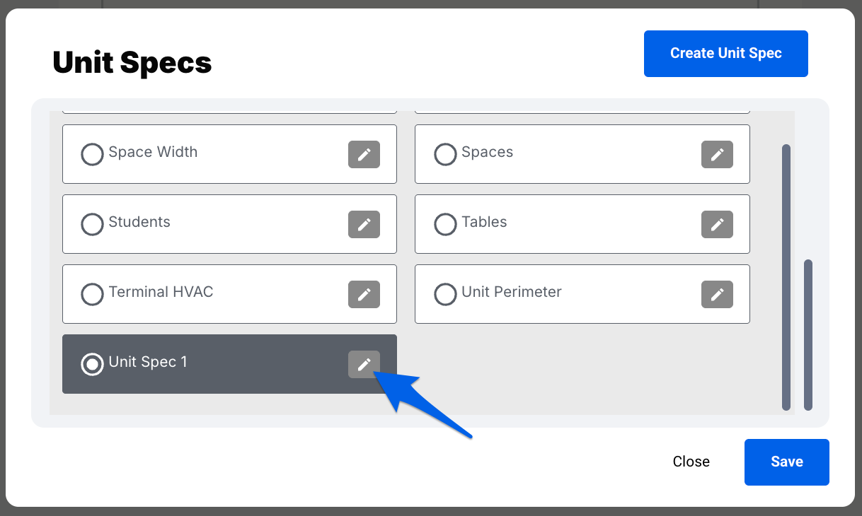 Click on the pencil icon next to the Unit Spec you'd like to edit.
