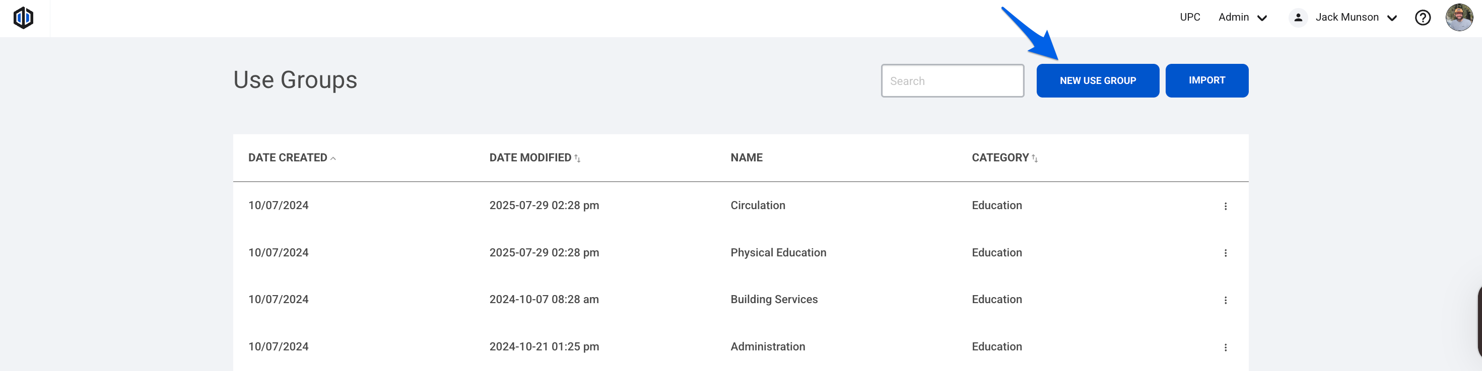 See below for steps on how to create and manage Use Groups within the Admin tab.