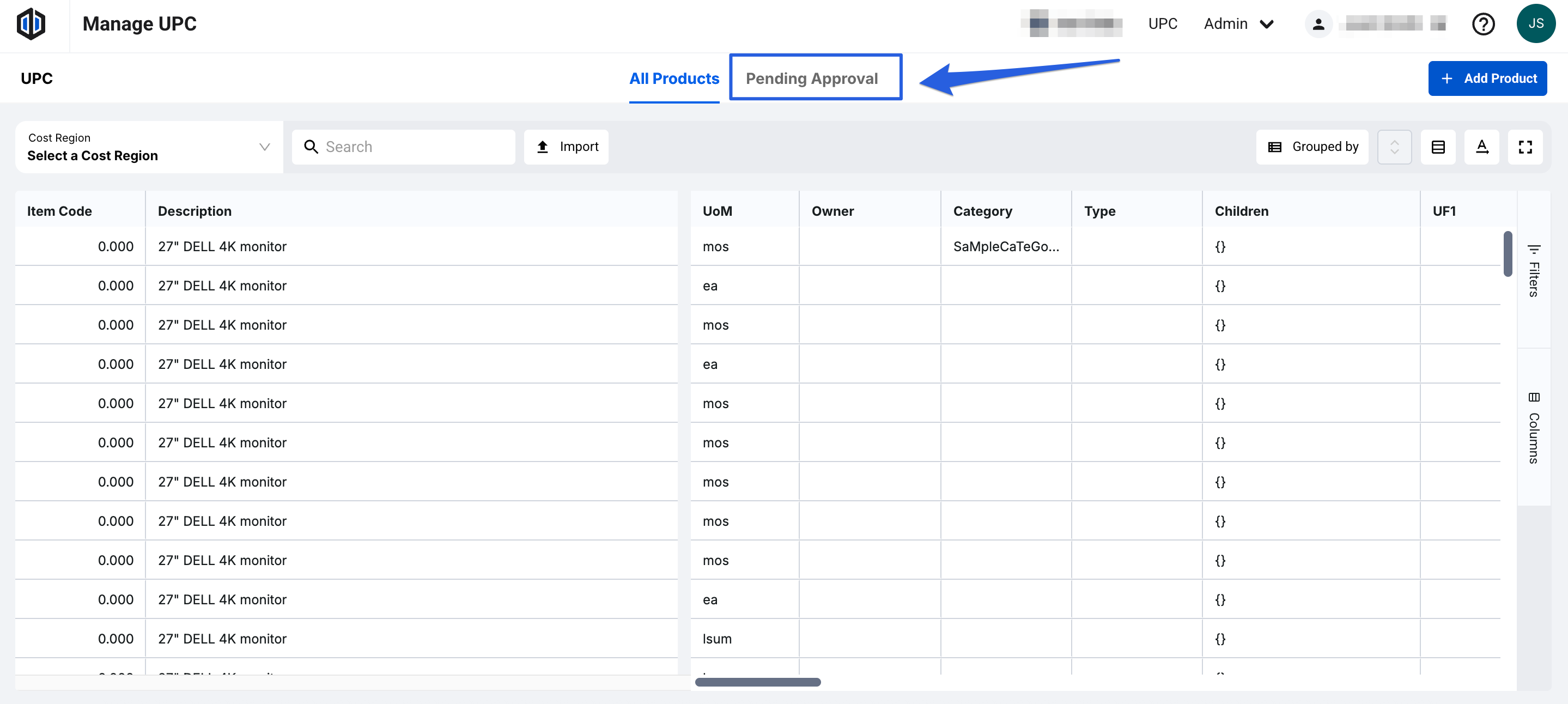 Global Admins have the ability to Approve requested line items be added to the Central UPC.