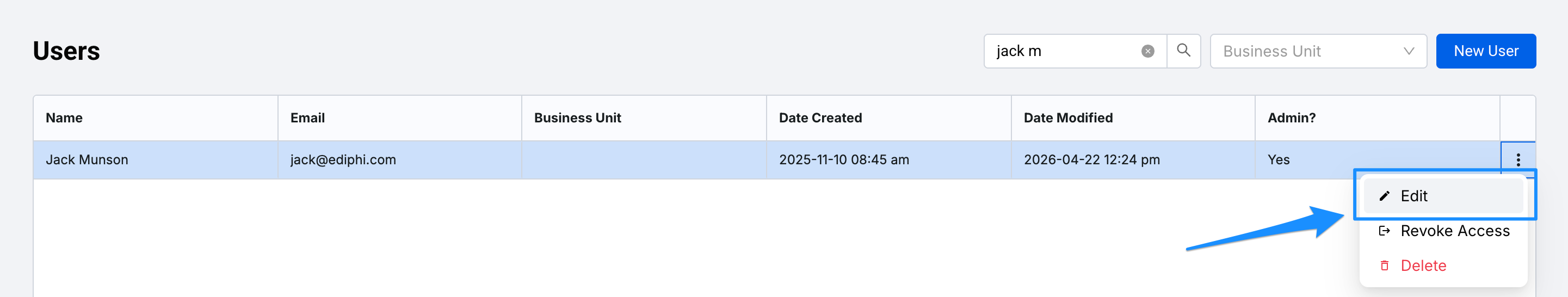 - Click the 3 dots (ellipses) to the right of the user, and select Edit.