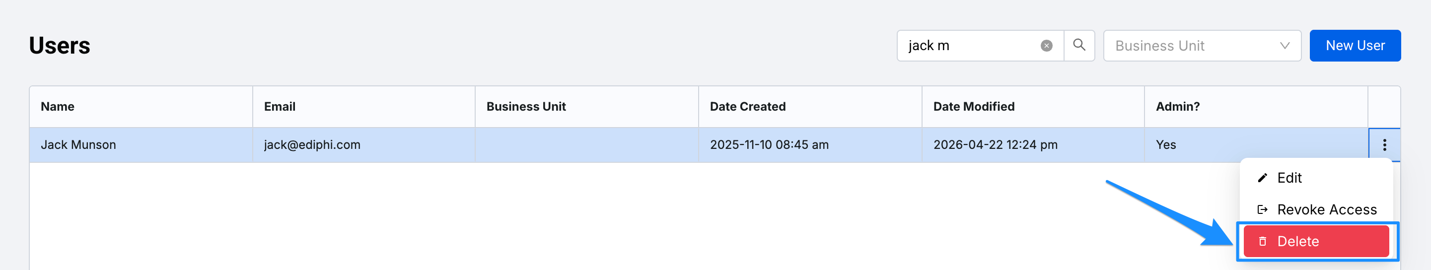 There may be times where you will need to remove a User from your environment entirely. If so, follow these steps: