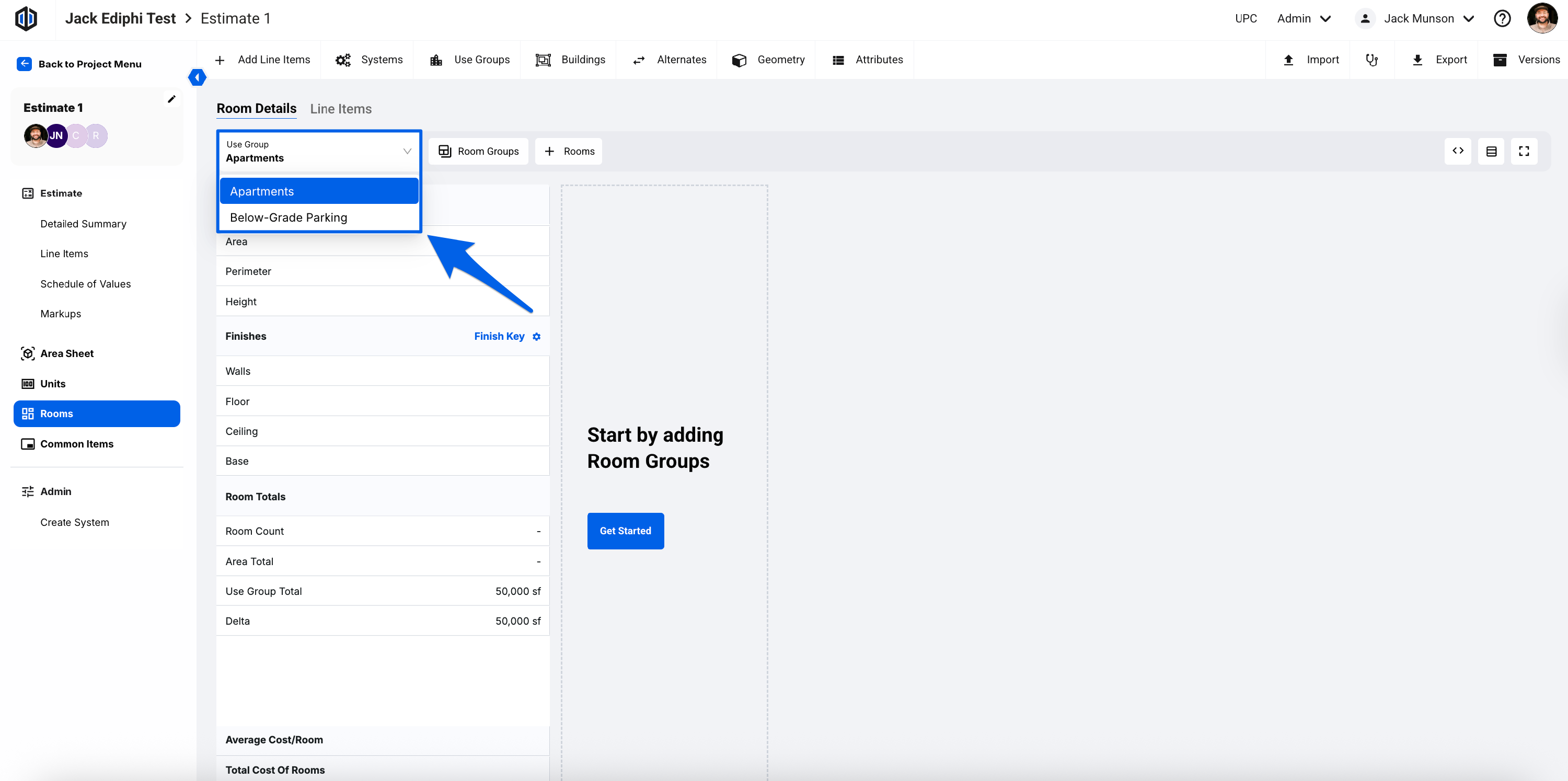 We’ll go over some of the basics of the Rooms tab. To start out, ensure that you’ve selected the correct Use Group that you want to work on: