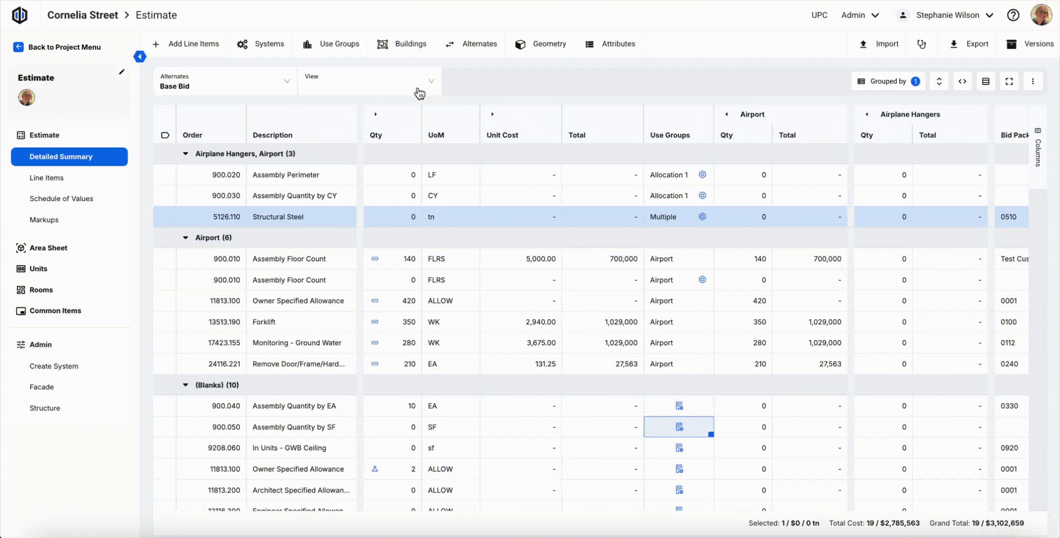 By following these steps below, users can create a general allocation that can be assigned to a line item via the allocation dropdown, eliminating the need to manually select Use Groups and set percentages for each item. This allocation acts as a “preset” for the Estimate. If edits are needed later, these steps will automatically update all line items using that allocation, rather than requiring individual modifications.