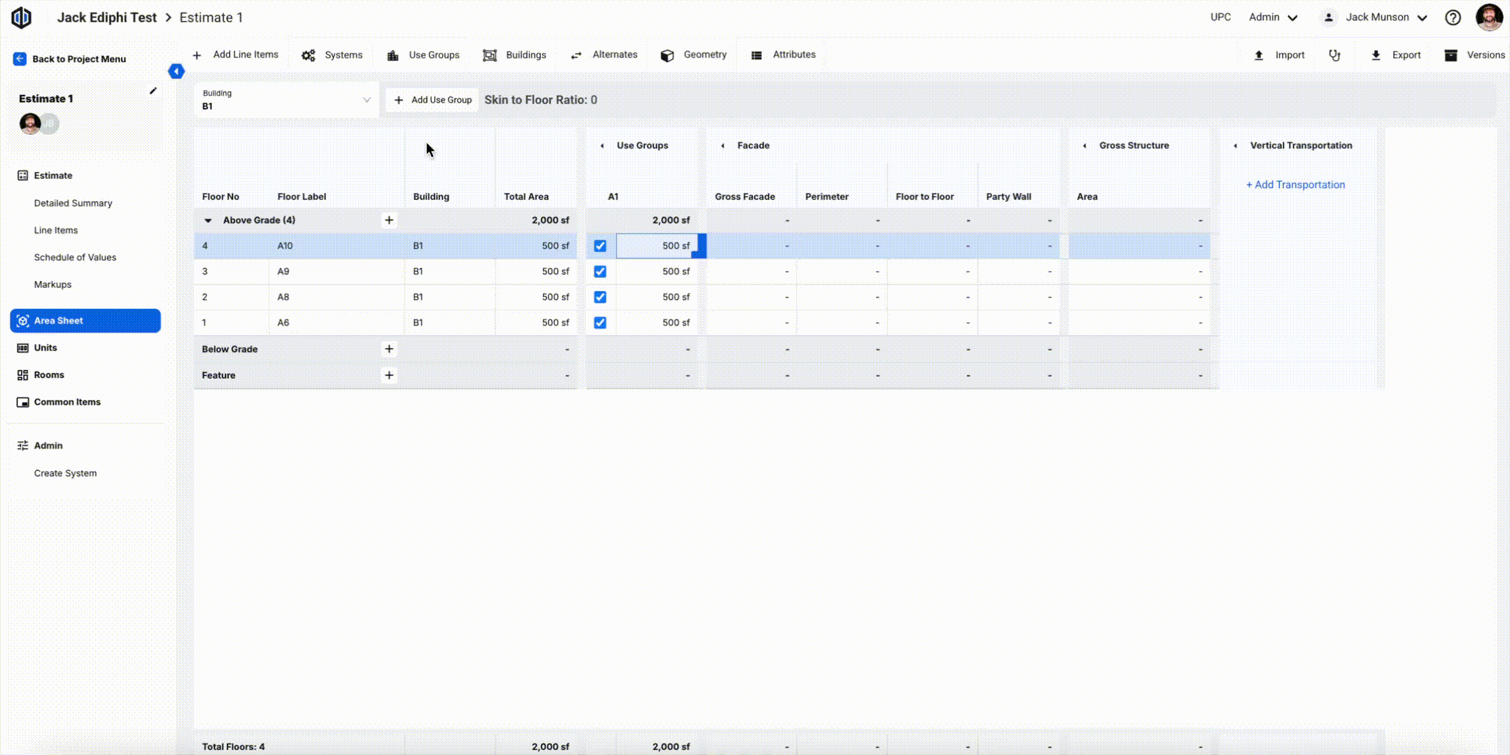- Move the floor area of the Use Group to the correct Building it’s assigned to.