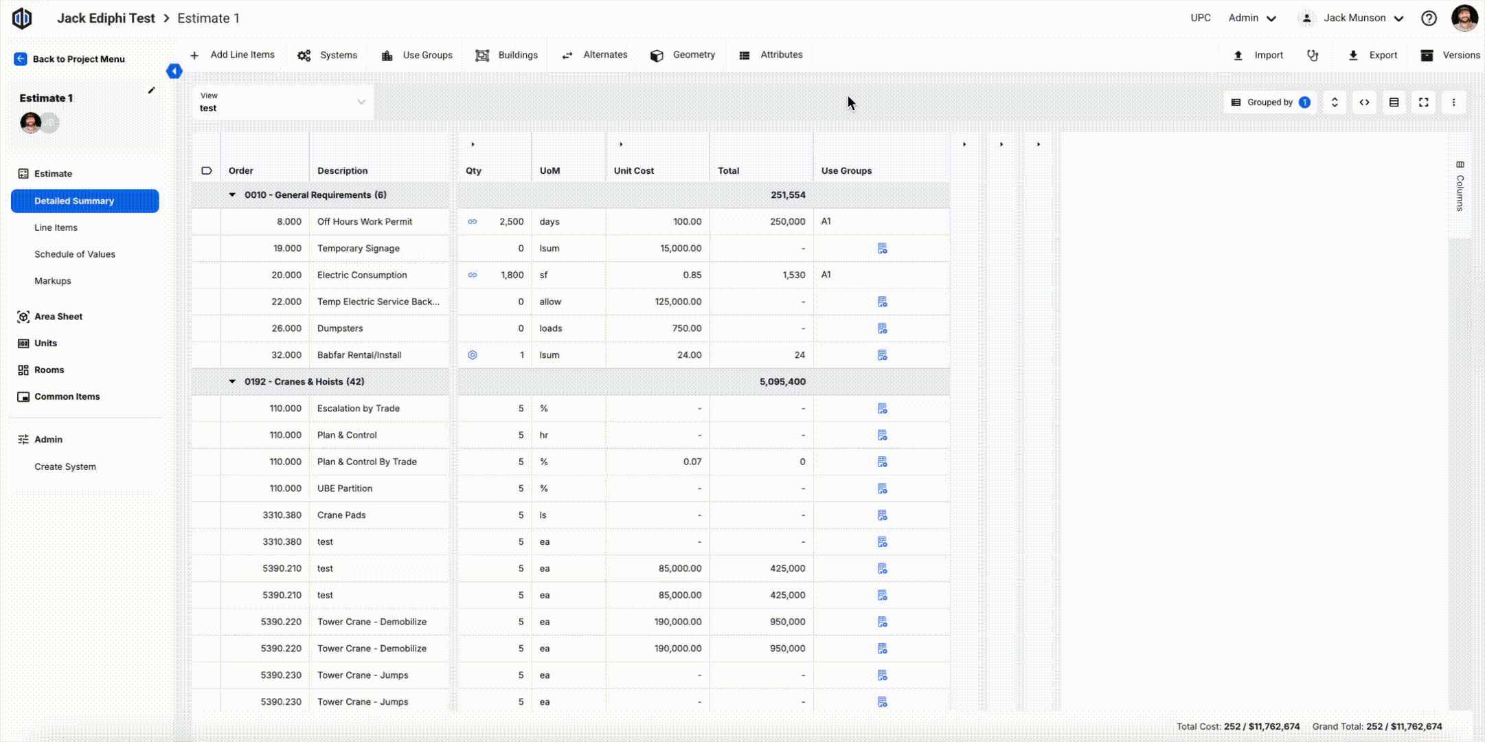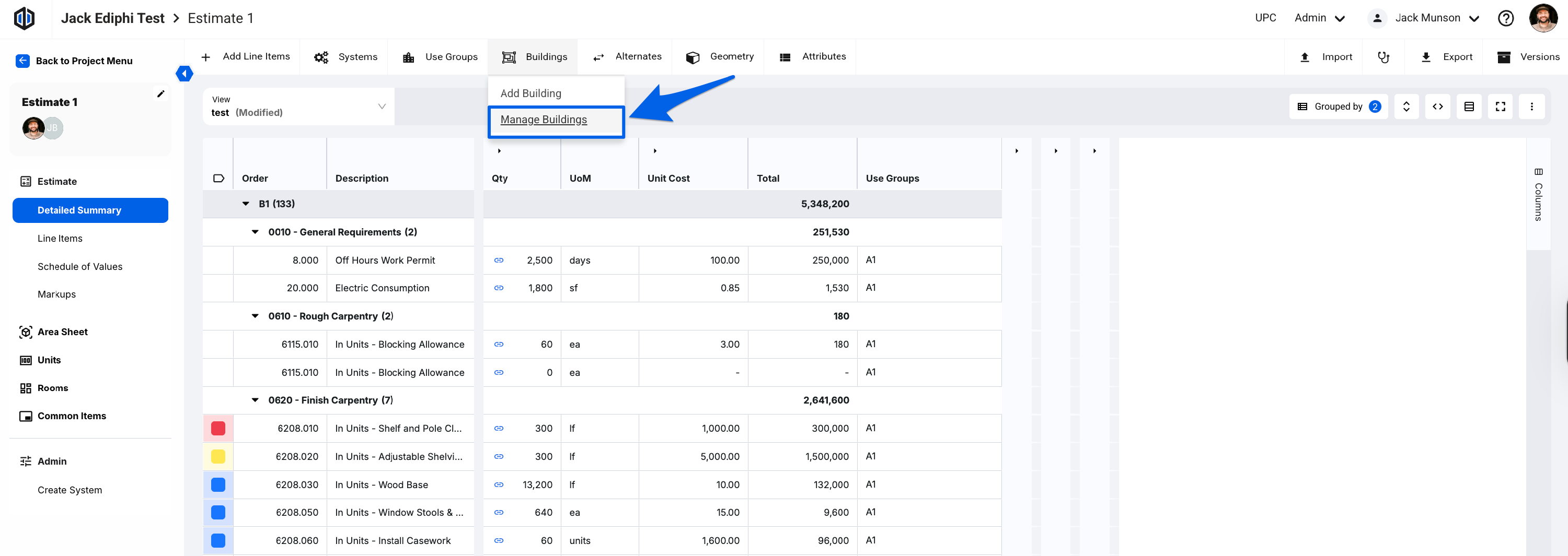 Now that you can assign specific Use Groups to Buildings, you can use the Buildings Grouping feature in the Detailed Summary to better visualize costs.