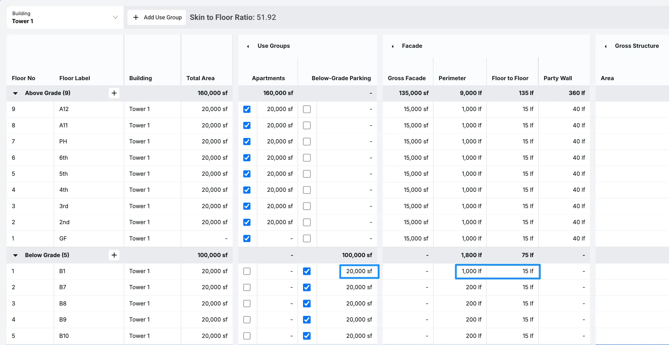 - The Gross Structure tab enables you to input the Gross Structure of each floor, if applicable.