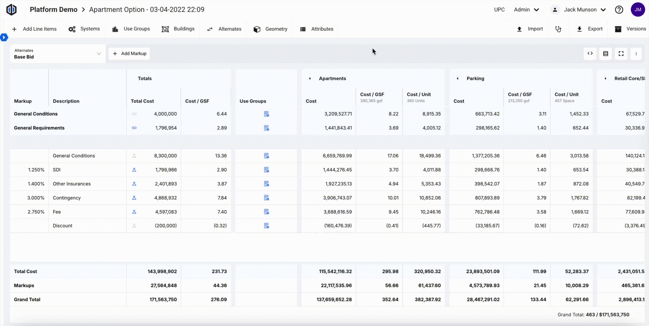 In Ediphi, Markup Templates help ensure consistency and save time by allowing estimators to apply standard markups automatically to their estimates. Global Admins can set up these templates in advance for their project teams, by region, streamlining the markup process for all users. This means that when a user creates a new project, they'll have the right standard markups set up already, so they don't need to set them up each time for new estimates.