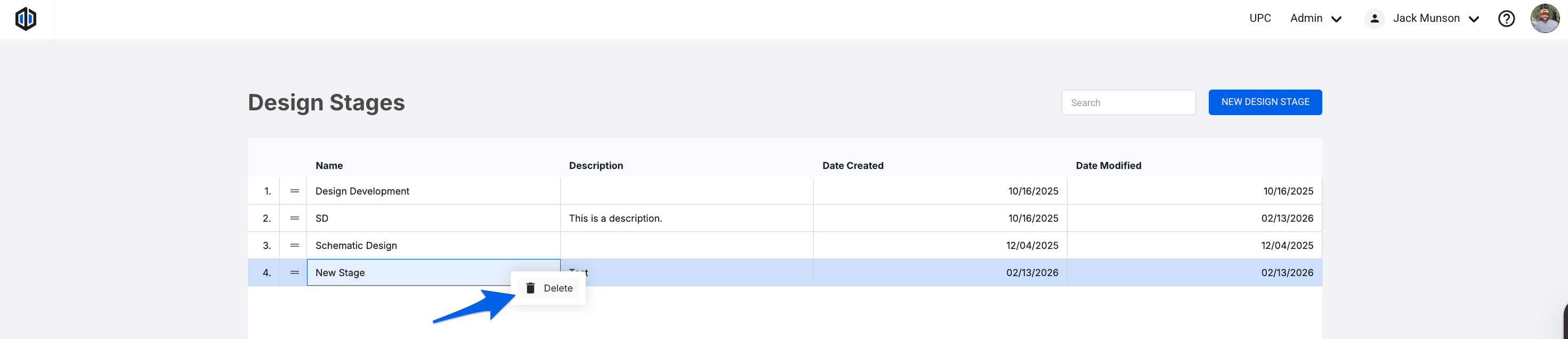 - Within the Design Stages page, right-click the Design Stage you’d like to remove.
