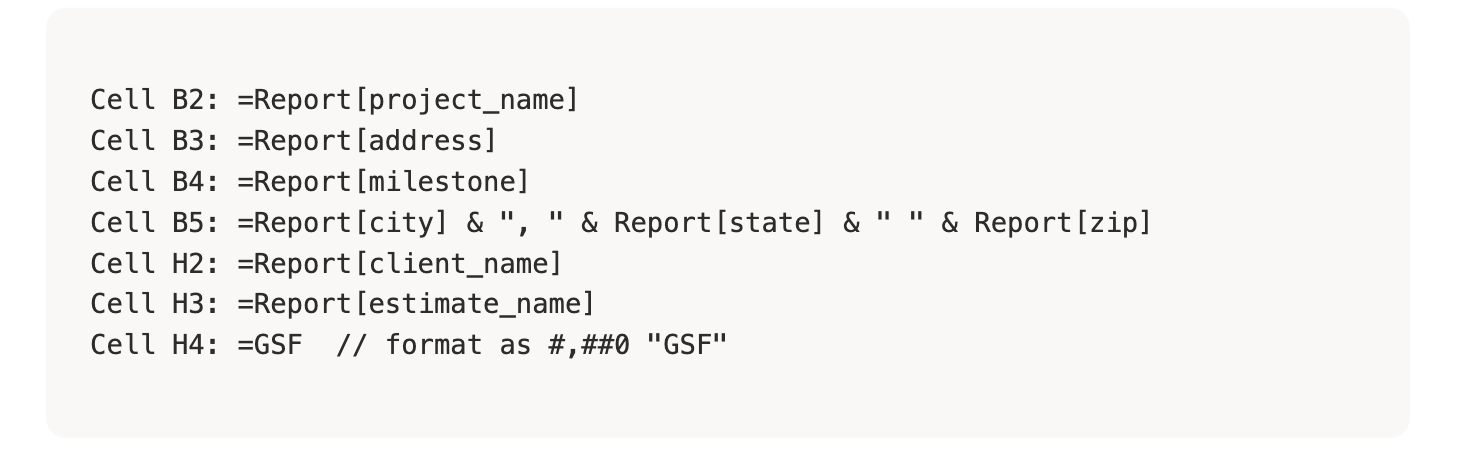 Static templates are considered user-created content. The formulas in this guide are examples - you are responsible for adapting them to your specific needs. If formulas break due to data structure changes, you must fix them yourself.