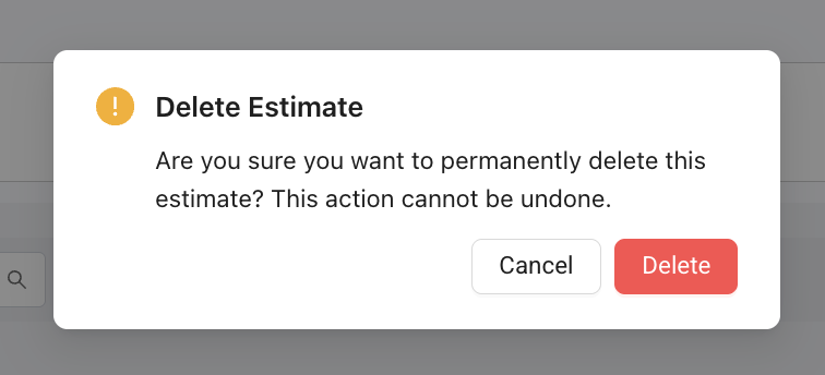 In the Estimates List view, click the ellipsis menu (⋯) next to the estimate you want to delete, and select Delete.