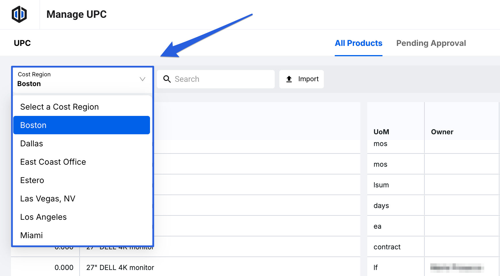 Pro Tip: In order to add costs to a product in the UPC, you will need to select the Region you want to assign costs to first. Once the Region is selected, a Unit Cost column will appear for you to edit (you would need to do this for each Region as needed).