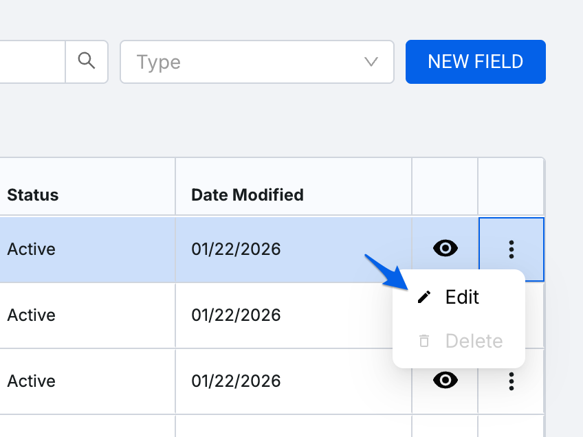 Note: For the Dropdown field type, once an option within has data input in a project, you will no longer have the ability to delete it (unless that option is cleared out across all projects). You can always modify the name as needed.