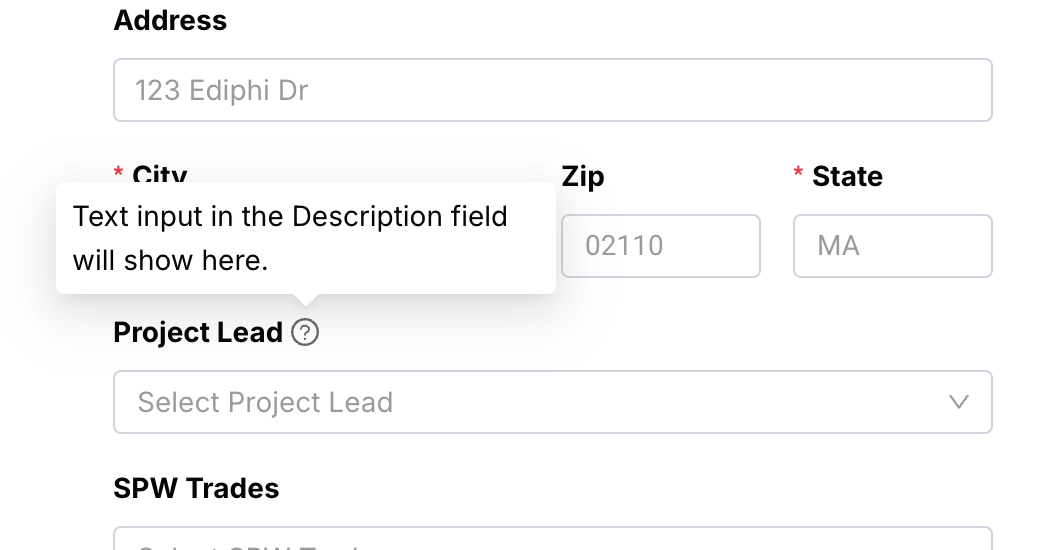 Pro Tip: The Description of a Project Metadata field will display within the project creation modal as a tooltip.