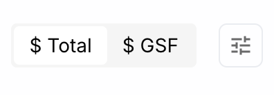 - $ Total / $ GSF toggle: switch between displaying total cost or cost per gross square foot on the Y-axis.