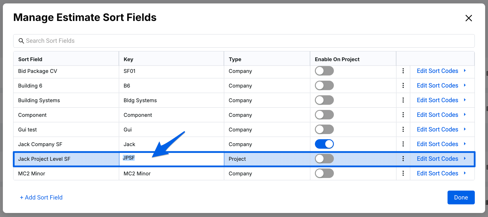 Note: Users will only be able to manage Sort Fields that have the Project type. To manage Sort Fields that have the Company type, please reach out to a Global Admin. See our Managing Sort Fields for Your Company article to learn more.