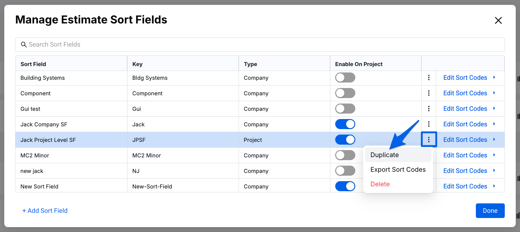- In the Duplicate Sort Field modal, select a destination project and select Duplicate.