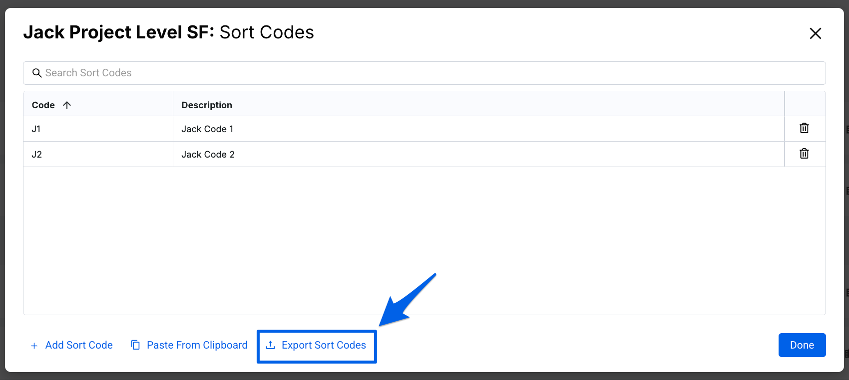There are two areas where a user can export Sort Codes: the Sort Fields list and the Sort Codes modal.