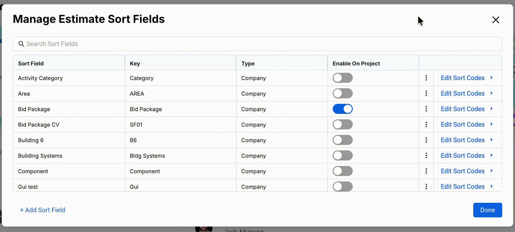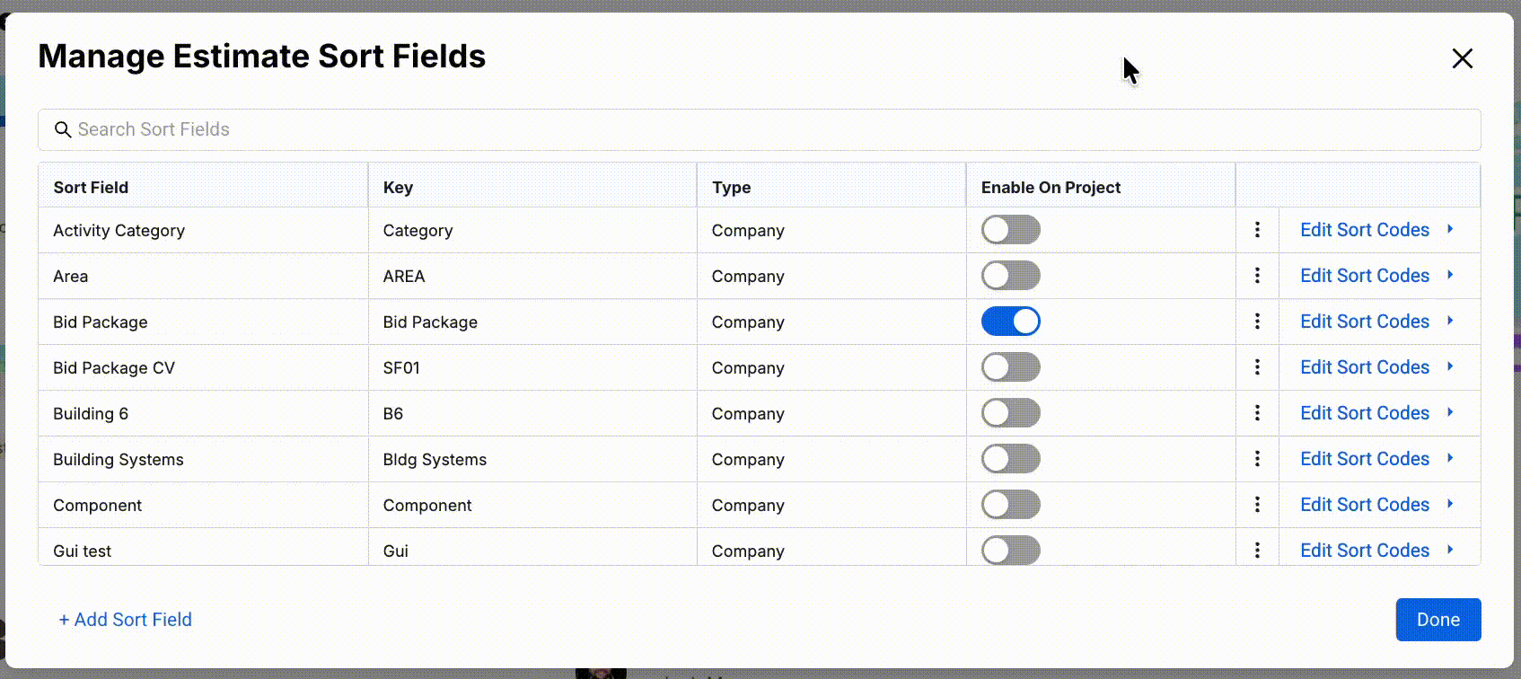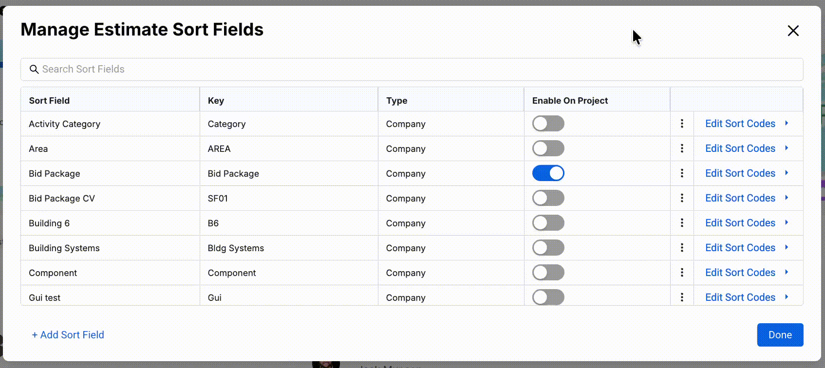 In Ediphi, Estimate Sort Fields and Codes help organize and structure estimate line items to suit your team’s workflow. Added by Global Admins, Regional Admins, and Project Owners, these customizable fields enable project creators and owners to apply relevant sorting options, making it easier for all users to navigate and manage estimate data efficiently. You are able to toggle specific Sort Fields to show on the project. Sort Fields can also be used as WBS (work breakdown structure) codes to help users communicate with Owners. See below for how to manage estimate sort fields and the codes within these sort fields.