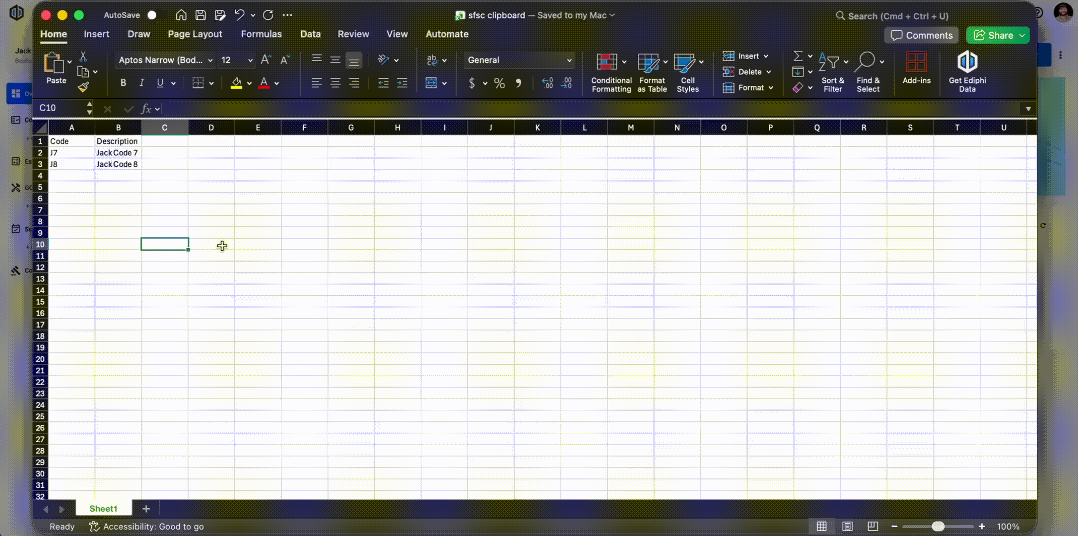 - Create two columns for Code and Description. Fill out these columns with data.