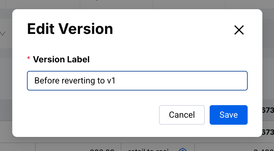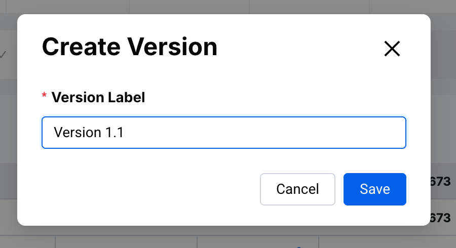 - A pop-up will appear, where you'll have the option to give your Version a Label (required). Once done, click Save.