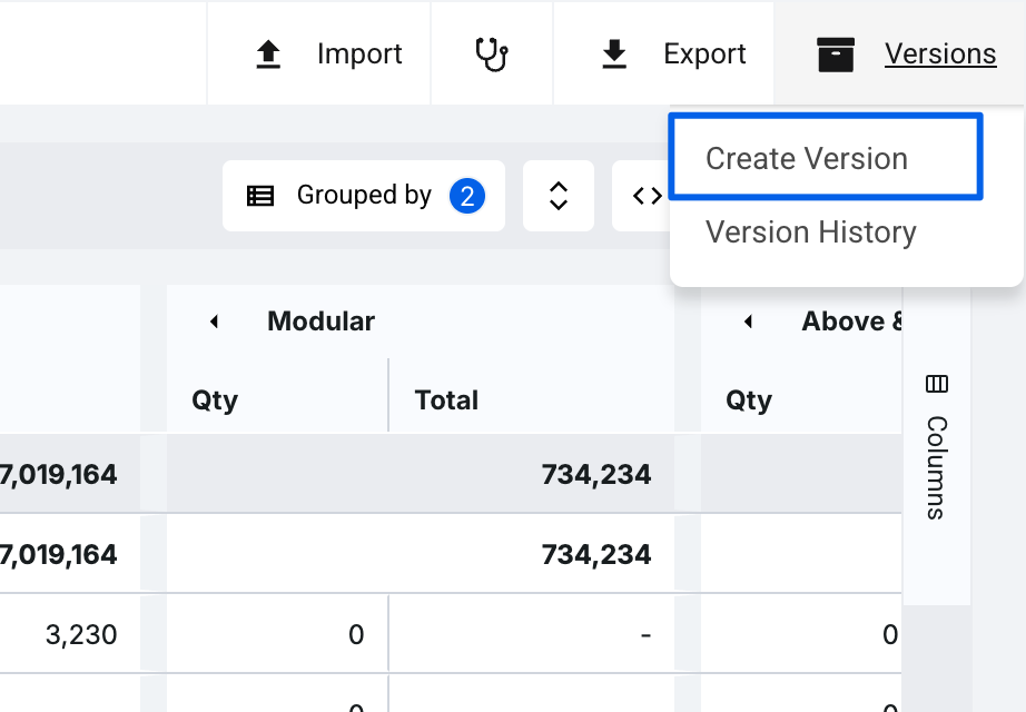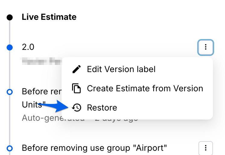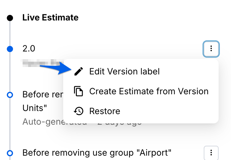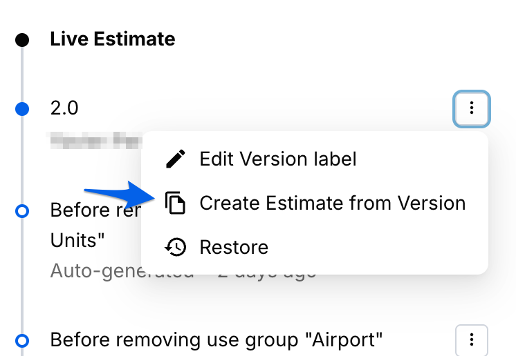 - Click on the more menu (ellipsis) of the Version you want to edit, and select Create Estimate from Version.