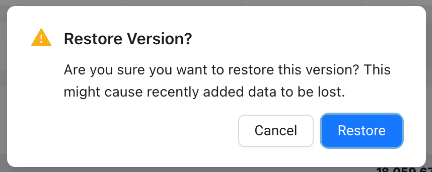 - A modal will appear asking you to confirm that you want to proceed. Click Restore.