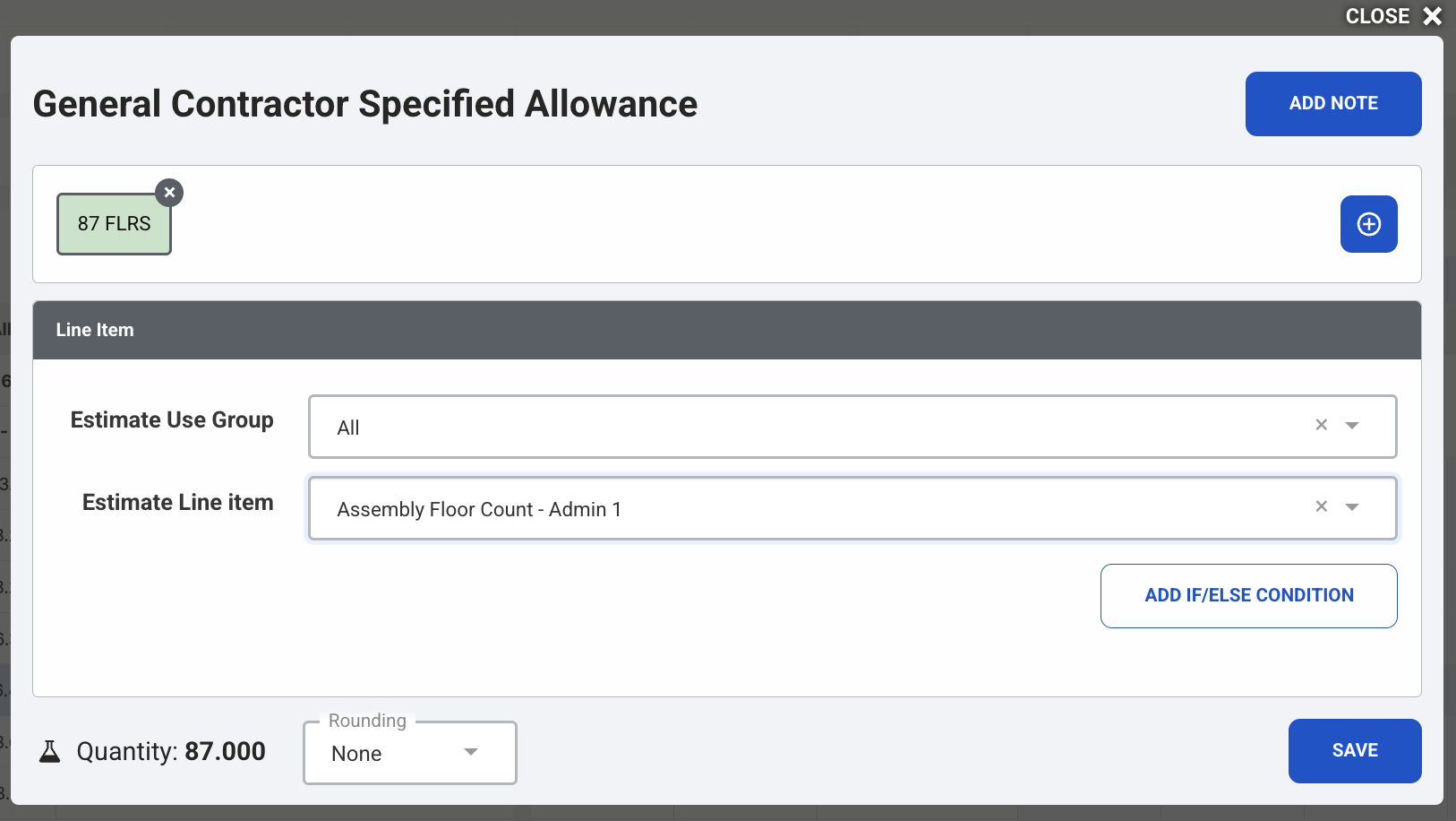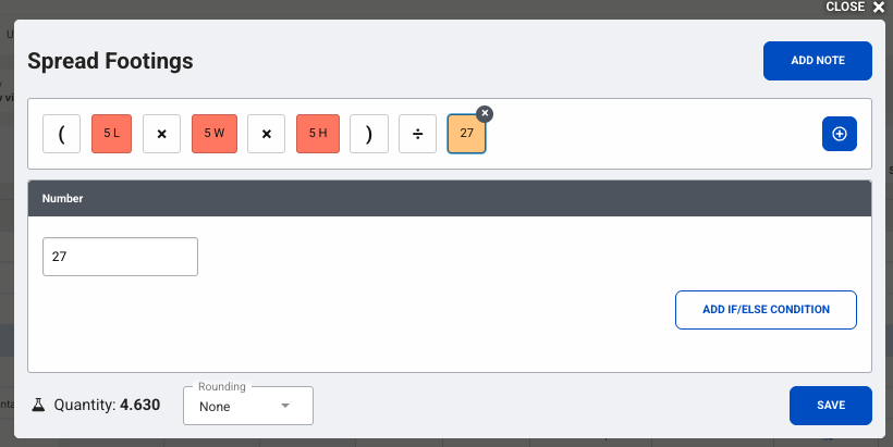Add a note to your quantity formula for more context when viewing line items in your estimate.